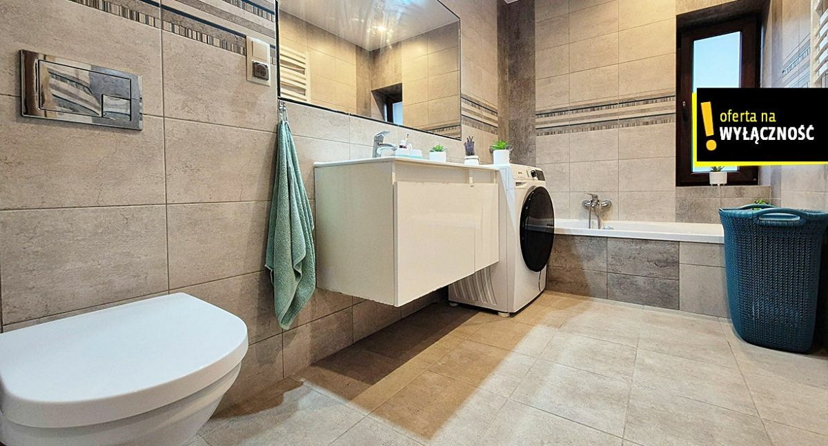 - duża łazienka z oknem oraz wanną i WC